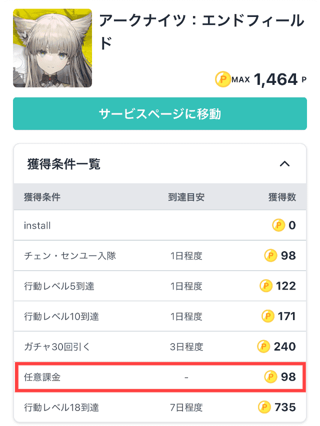 ポイ活案件「アークナイツ:エンドフィールド」に挑戦したところ、条件達成までの日数は以下のようになりました。目安として参考にしてください。