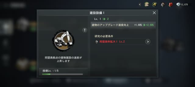 | Lv.12 | 同盟センターLv.11 | コマンドセンターLv.1 |