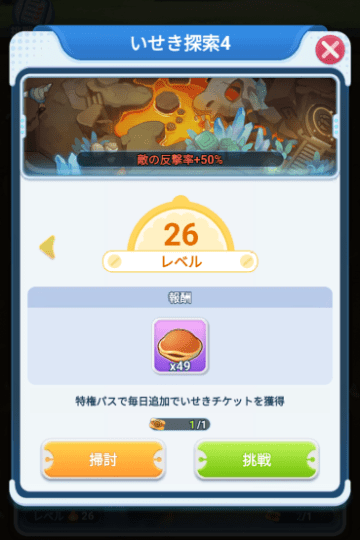 クリアステージへのおでかけでは、1〜20倍まで倍率設定が可能です。最大で1回のおでかけで体力100まで一気に消化できます。