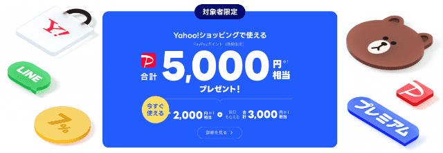 - 特典1.LYPプレミアム会員登録と同時に、PayPayポイント(期間限定)2,000円相当GET